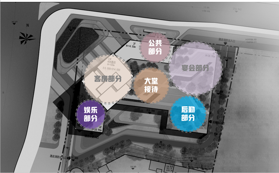 The project is positioned as a five-star hotel in the center of the wine city, and the overall architectural design is brief and generous. The hotel has public part, lobby reception, banquet part, guest room part, entertainment part and logistics part. The hotel aims to create a high-end conference, catering, living, leisure, entertainment and other services in luzhou city. Become one of the regional landmark buildings