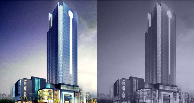 The building is divided into two parts including podium and tower. The podium reformed with large areas of glass curtain wall combined with stone walls, and the curtain walls changed by the use of white frame, dark frame and different ways of dividing.The tower of a large area of the transverse vertical lines combined with partial intensive metal grille, making the whole building can be achieved sense of the curtain wall even if the windows are designed. The protuberant design of glass curtain wall of white frame on the rooftop combined stone fence, highlighting the building’s fashion sense.