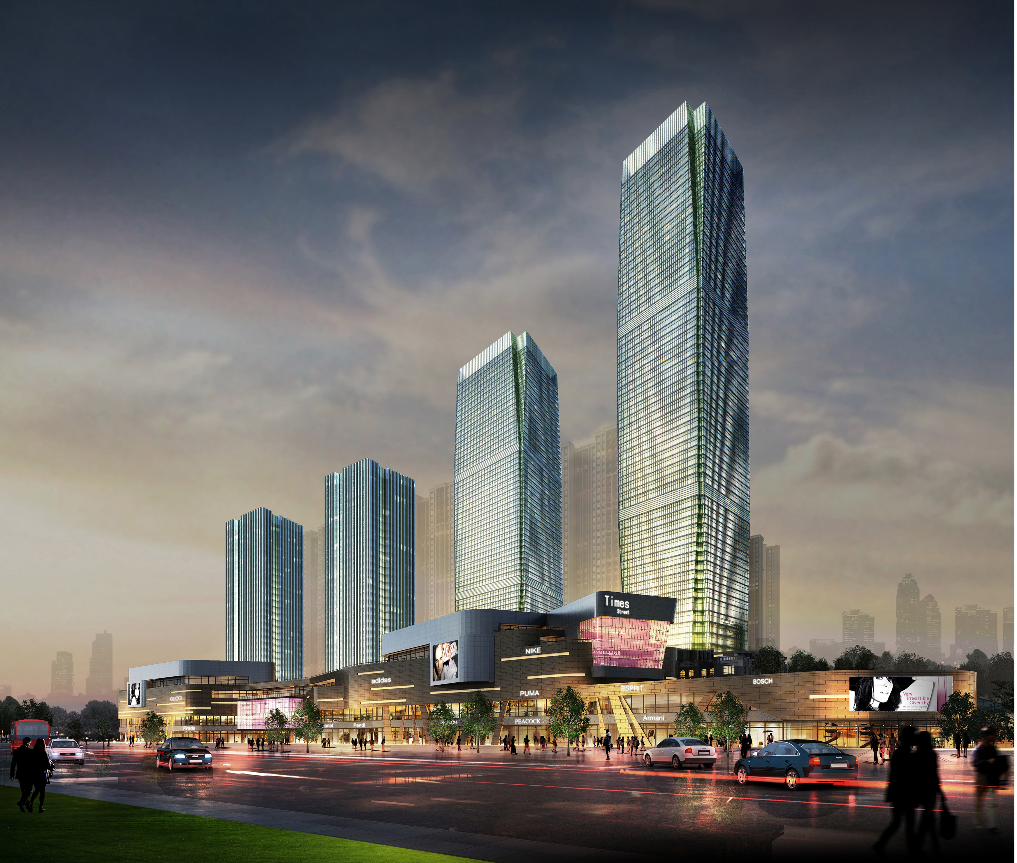 The project includes the college area of the kindergarten and primary school teaching building apartment,adjacent to the college area is a residential building consisting of two towers,supporting a commercial and underground garage。