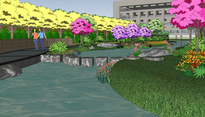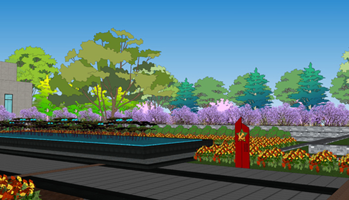 The design through the tree array, lamppost on the line to highlight the gravity of the entire campus. The ground uses the warm tone of the paving and the surrounding green plants to make the entire campus solemn and affinity. Through combine with the four different functional blocks of the courtyard, Square, waterscape, sports ground, mountain and other landscape space, it finaly become a rich, vivid campus environment.